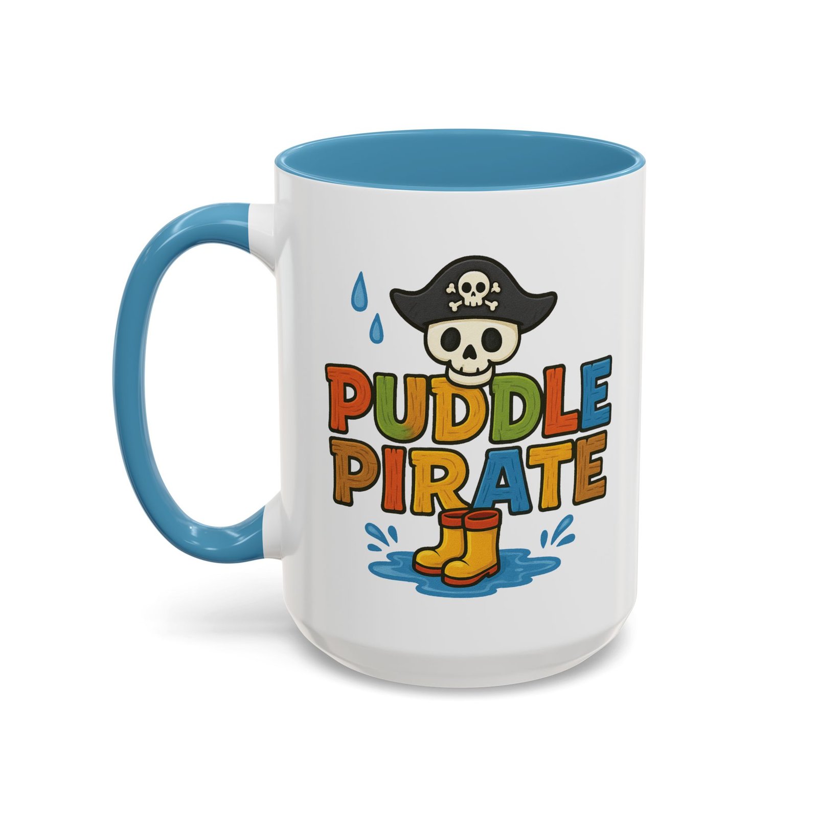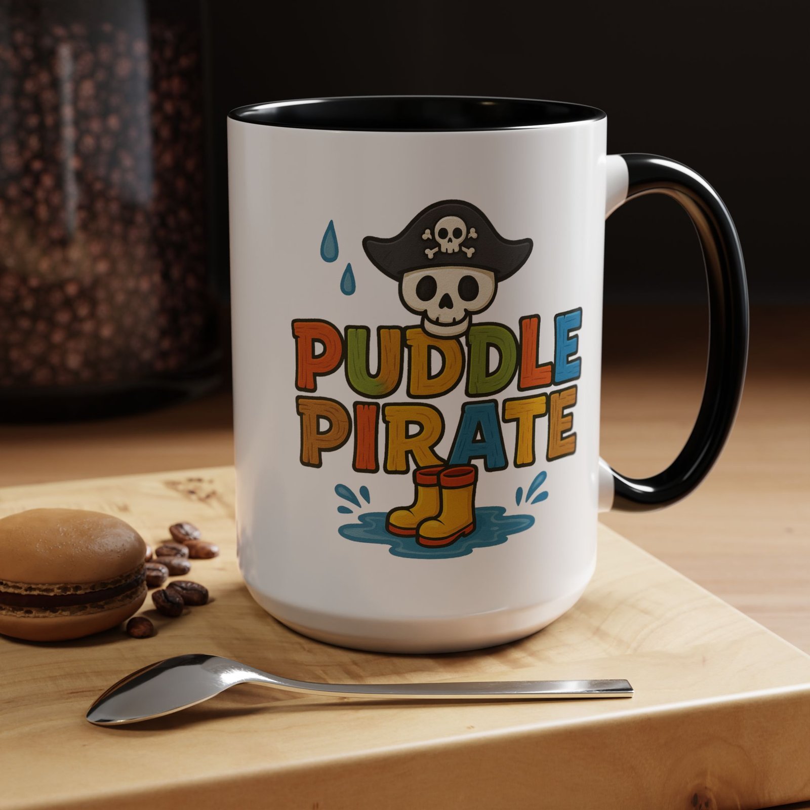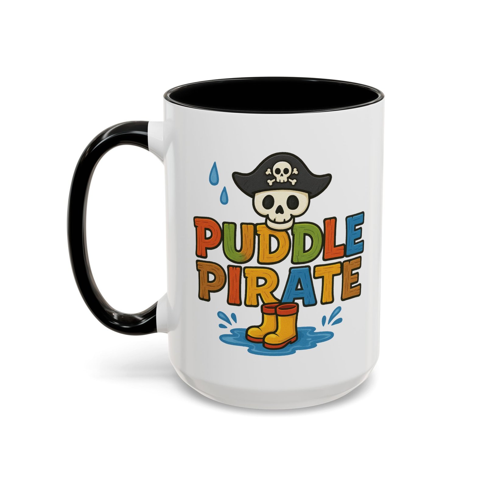 Accent Coffee Mug – 11 oz Or 15 oz – Puddle Pirate Skull – Cup – Choice of Colors.