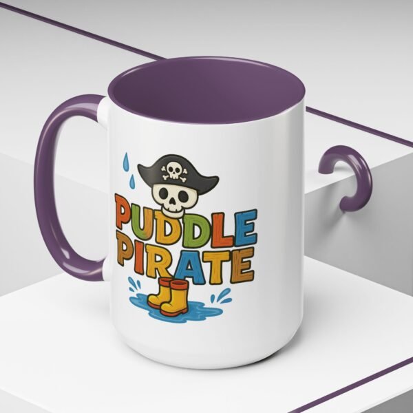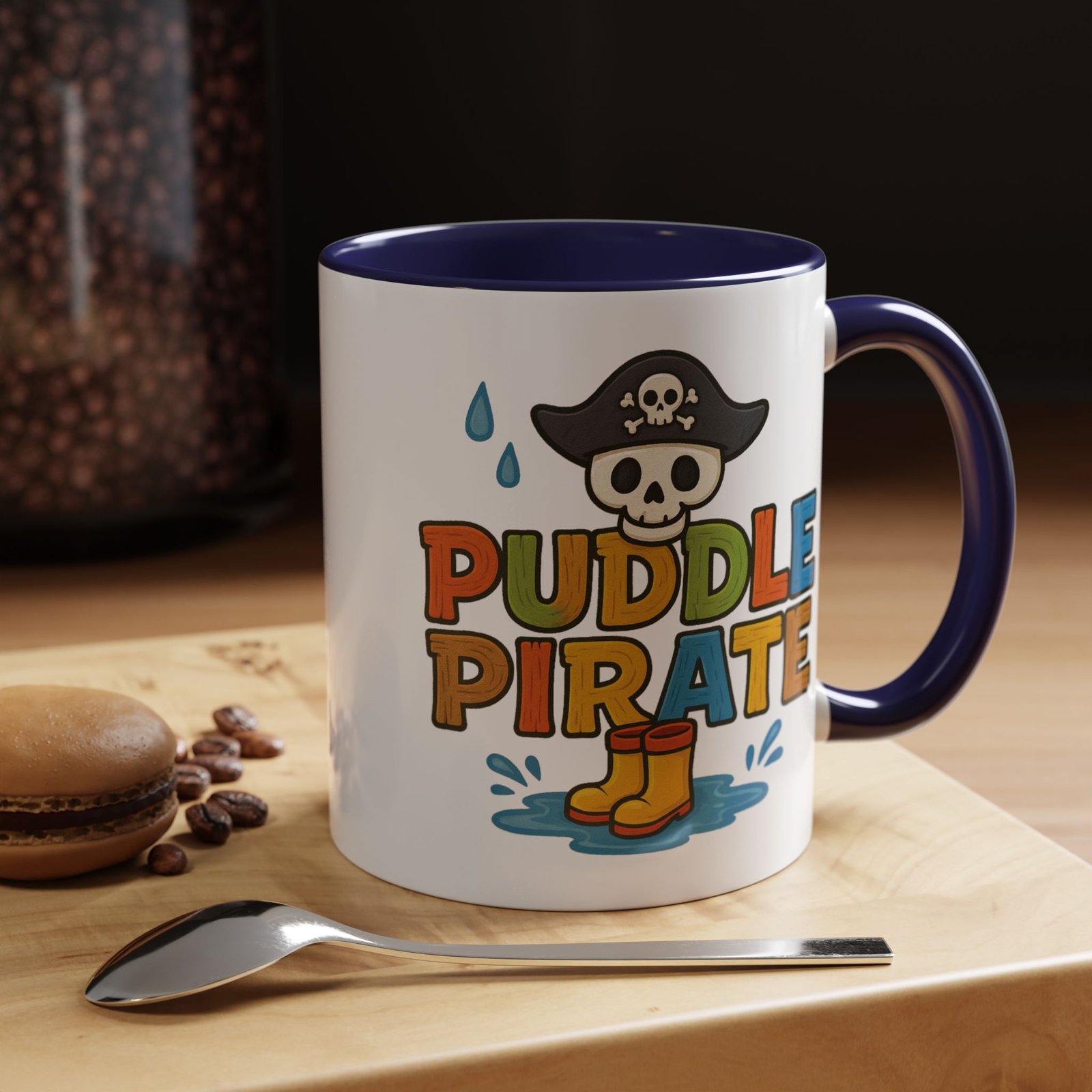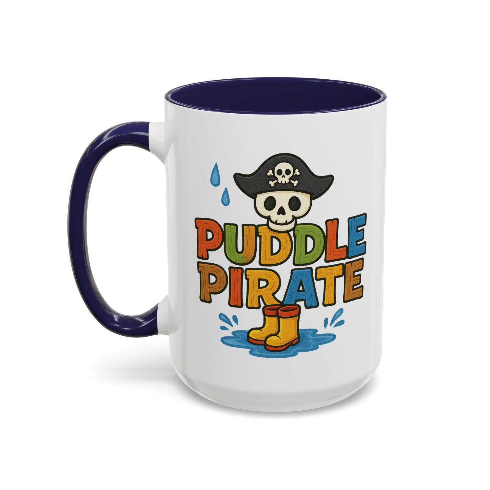 Accent Coffee Mug – 11 oz Or 15 oz – Puddle Pirate Skull – Cup – Choice of Colors.