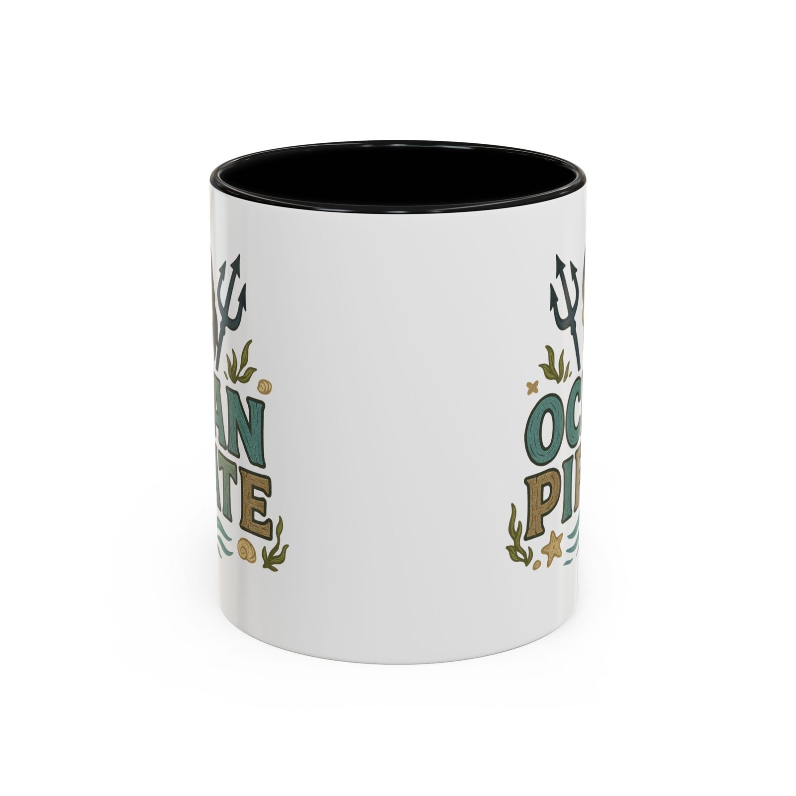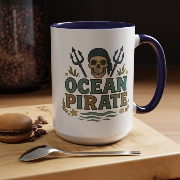 Accent Coffee Mug – 11 oz Or 15 oz – Ocean Pirate Skull – Cup – Choice of Colors.