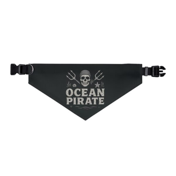 Pirate Pet Bandana Collar – Ocean Pirate Design for Dogs – White on Black.