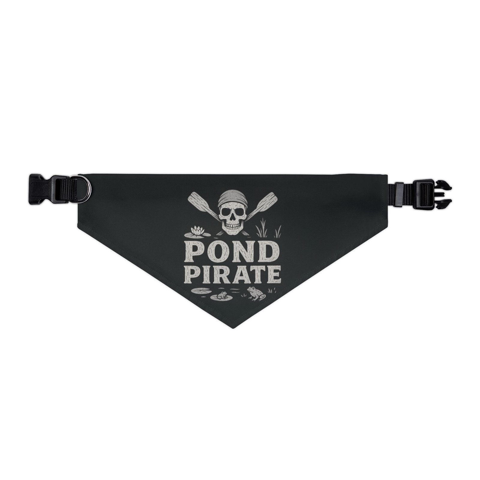 Pirate Pet Bandana Collar – Pond Pirate Design for Dogs – White on Black.