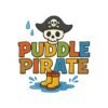 DESIGN: Features a skull pirate wearing a pirate’s hat with a pair of rain boots splashing in a puddle. The text, “PUDDLE PIRATE” done in a worn driftwood appearance. Colors include black, white, brown, yellow, blue, green, and red. We hope you and your kids love it!
