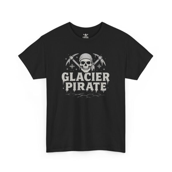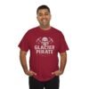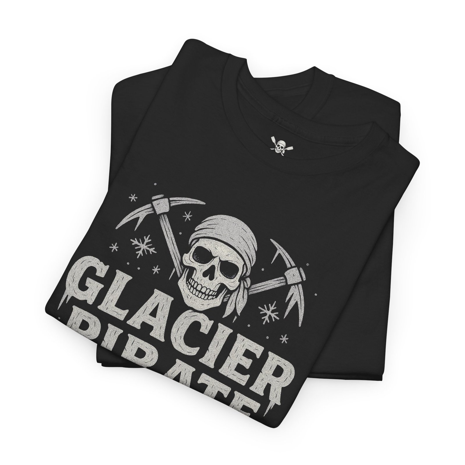 DESIGN: A classic fit tee featuring a skull wearing a bandana with crossed ice picks behind him and waves. The text, “GLACIER PIRATE” in in whites and grays, to look like worn driftwood. Super cool glacier style. The design is on the front. In your choice of tee color. Just plain fun for anyone who loves this glacier lifestyle. Ideal for casual wear, canoeing or boating, 4th of July get togethers, summer bbqs, Father’s Day, Mother’s Day, and birthdays. We hope you love it!