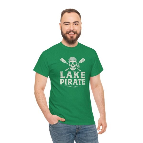 DESIGN: A classic fit tee featuring a skull wearing a bandana with crossed oars behind him. The text, “LAKE PIRATE” in whites and grays, to look like worn driftwood. Super cool lake style. The design is on the front. In your choice of tee color. Just plain fun for anyone who loves this lake lifestyle. Ideal for casual wear, canoeing or boating, 4th of July get togethers, summer bbqs, Father’s Day, Mother’s Day, and birthdays. We hope you love it!