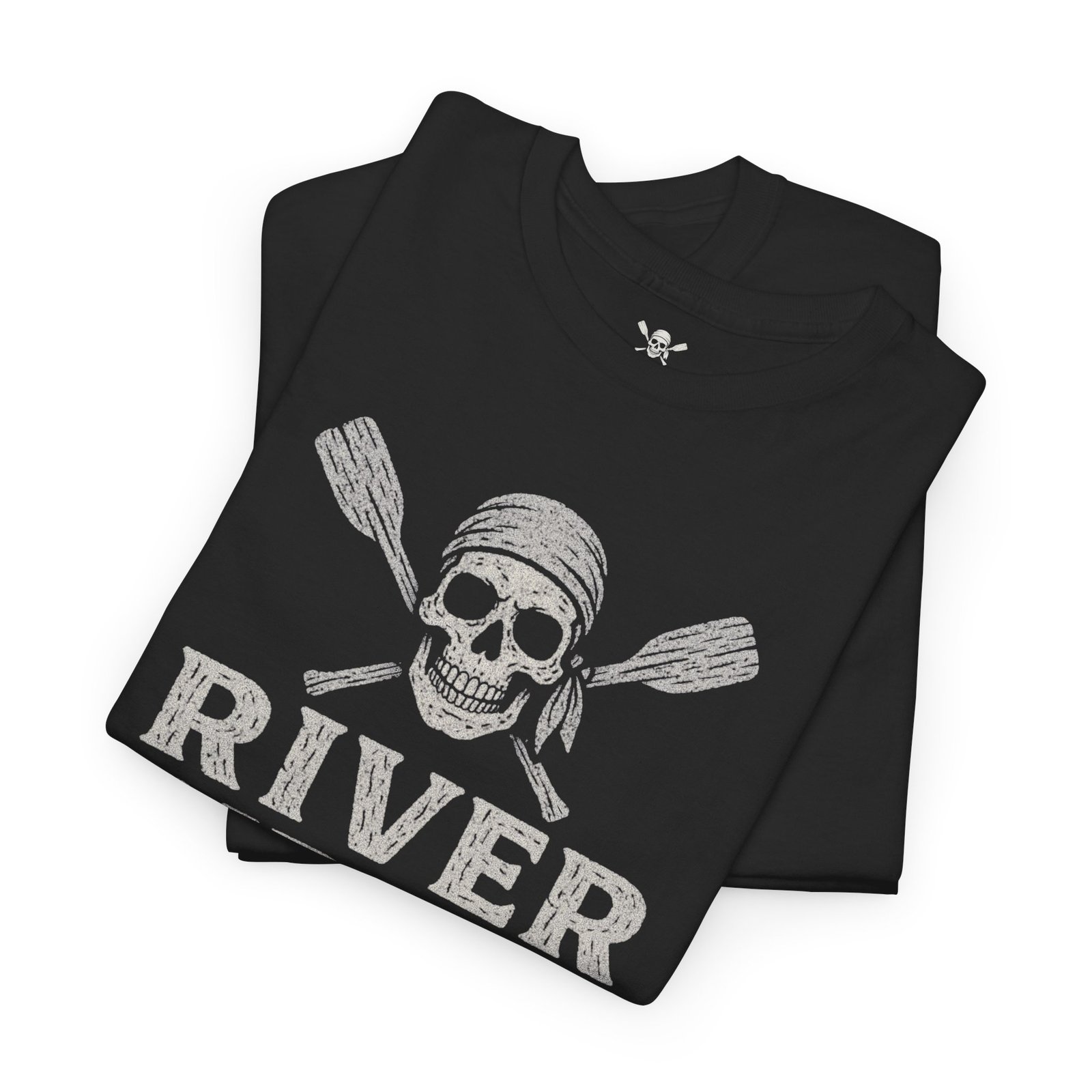 DESIGN: A classic fit tee featuring a skull wearing a bandana with crossed oars behind him and waves. The text, “RIVER PIRATE” in whites and grays, to look like worn driftwood. Super cool river style. The design is on the front. In your choice of tee color. Just plain fun for anyone who loves this river lifestyle. Ideal for casual wear, canoeing or boating, 4th of July get togethers, summer bbqs, Father’s Day, Mother’s Day, and birthdays. We hope you love it!